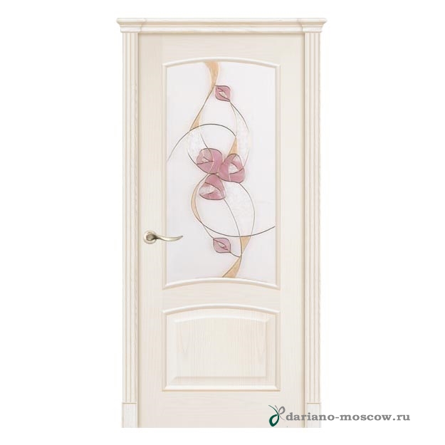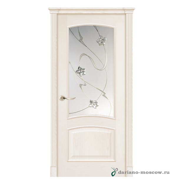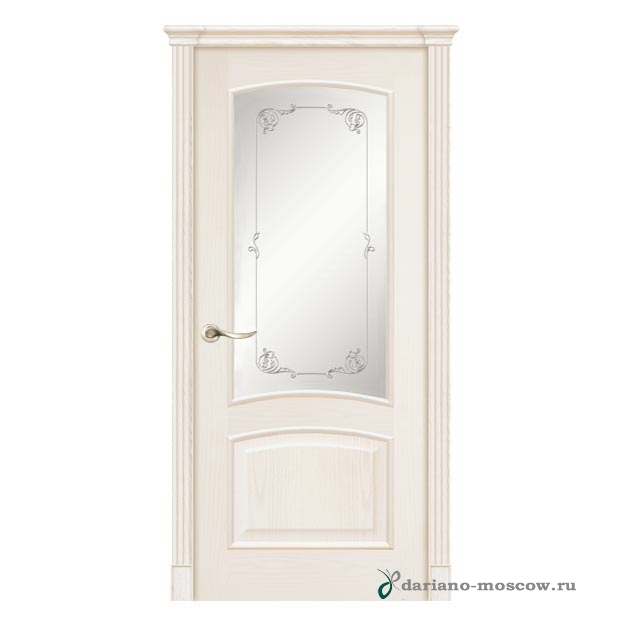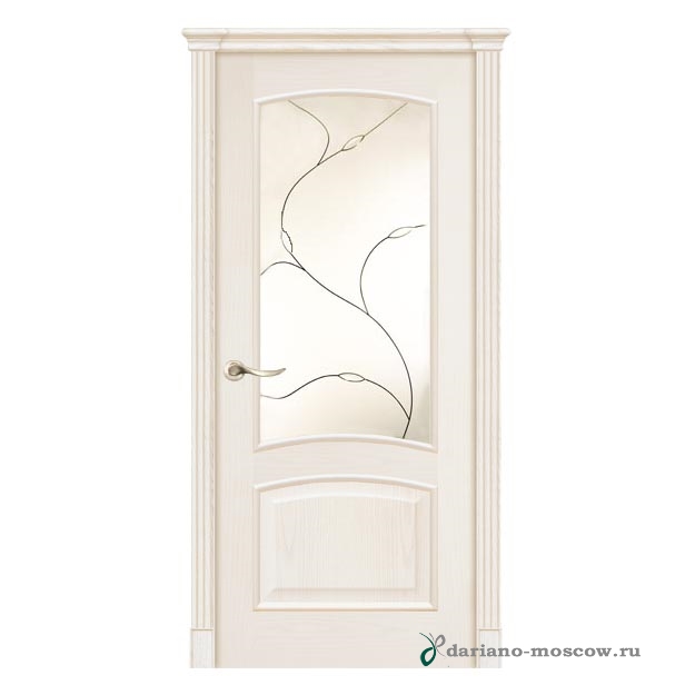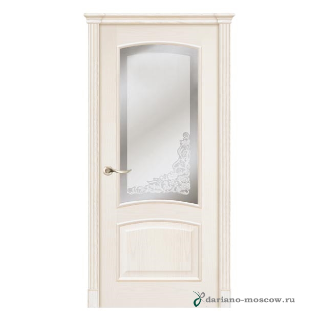 Багетная серия Дариано. Дверное полотно изготовлено из наборного массива сосны. В качестве отделки используется натуральный шпон ясеня карамель.